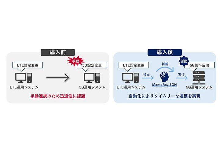 しかし、LTE/5Gネットワーク双方のシステムを連携する必要があり、導入当初は設定変更を手動で行っていたが、効率的な運用や迅速な品質改善が難しいことが課題になっていた。その問題を解決したのが、今回導入された「MantaRay SON」だという。