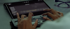 弱視の学生がMac上で「拡大鏡」アプリを使用し、iPhoneのカメラを連携させることで、講義室の遠くにある黒板の文字を手元の画面に拡大表示する。コントラストの調整や色反転を行い、視認性を高めることも可能。点字画面入力とVoiceOver