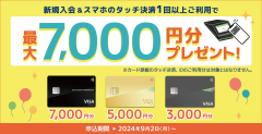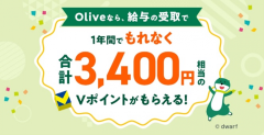 「Oliveフレキシブルペイ」のクレジットモードに入会し、スマートフォンのタッチ決済を利用した場合の特典では、カードランクに応じて最大7000円分のVポイントPayギフトがプレゼントされる。参加条件は、対象期間中にOliveフレキシブルペイ(クレジットモード)に新規入会し、入会した月の1カ月後末までにクレジットモードにてApple Pay、Google Pay、Samsung PayによるスマホのVisaのタッチ決済を1回以上利用することとなっている。