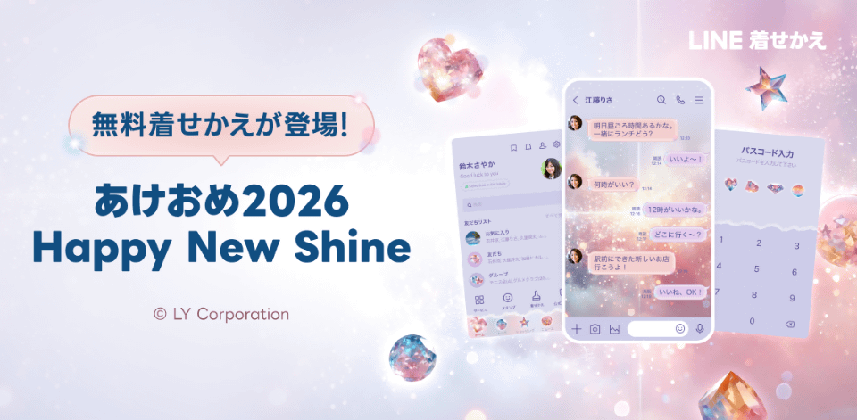 「あけおめスタンプ2026」には、「M!LK」、「ミャクミャク」、「KAWAII LAB.」、「たまごっちのプチプチおみせっち」などのアイドルやアニメ、キャラクターが一部ボイス付きスタンプで登場する。