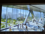 IOWNはオフィスのほか、低層階のパブリックスペースにも展開される。たとえば、屋内貫通通路「(仮称)Cross Gate」では、大規模なパサージュ・アトリウム空間の壁面・天井一体型の大型LEDビジョンとIOWNを連携させた新たな空間体験を演出する。産業支援施設でもIOWNを活用し、世界中のさまざまな企業や人々と共にイノベーションを創出し、新しいビジネスやサービスを実証、文化発信拠点として運営する。
