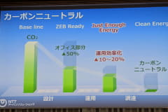 その上で、光電融合デバイスなどの仕組みを取り入れる。NTT常務取締役の大西佐知子氏は「光電融合デバイスで、(AI処理などを担う)GPUの発熱も下げていく」と語り、ビル全体での消費電力の抑制も狙う。