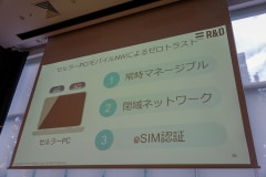 提案の核となるのは、物理SIMを使わずソフトウェアで契約情報を書き換えるeSIMを搭載した「セルラーパソコン」と、企業専用の閉域網接続技術。パソコンから直接キャリアのモバイル回線を使い、インターネットを経由せず企業内ネットワークに接続することで、公衆Wi-Fi利用時のリスクを避けられるほか、物理SIMの不正利用も防げる。