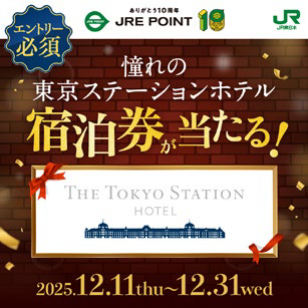 なお、JRE POINTの誕生日当日となる2026年2月23日に東京ステーションホテルに泊まれる宿泊券が当たるキャンペーンが実施されている。特賞は「インペリアルスイート」が用意されている。応募期間は12月11日~31日まで。