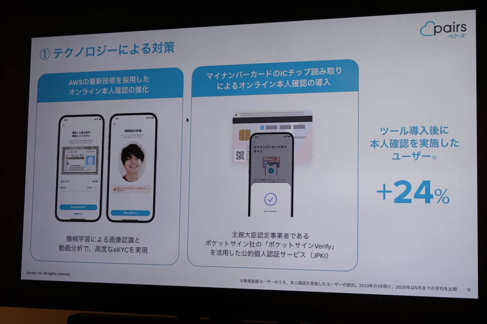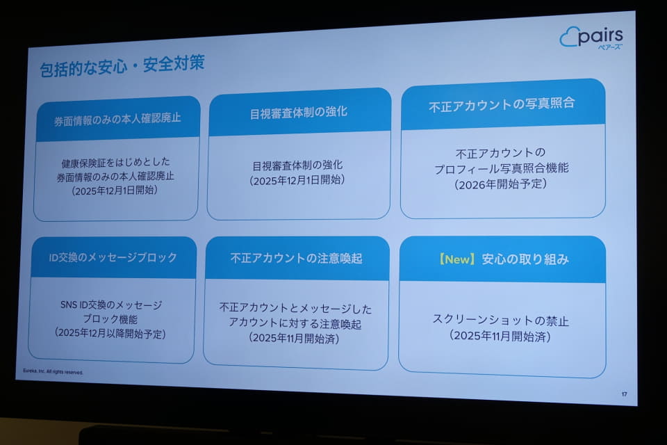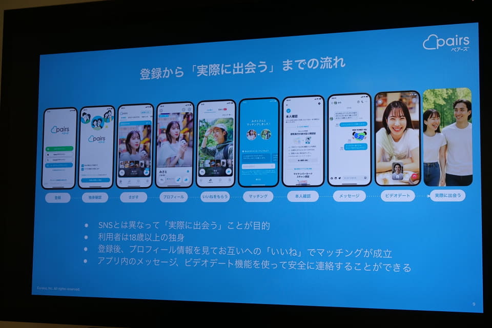 今回は、マッチングアプリ「ペアーズ」を運営するエウレカの担当者から、同サービスのAI活用とユーザー保護への取り組みを聞いた。