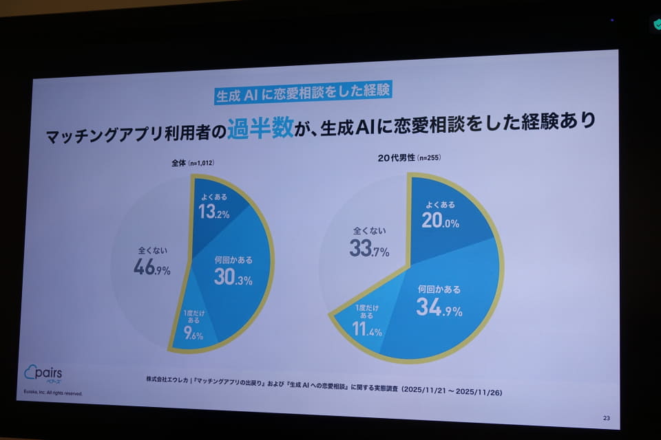 ここまで、マッチングアプリ利用者と犯罪者によるAI活用について言及してきたが、ユーザーの多くも恋愛に関する生成AI利用が進んでいる。