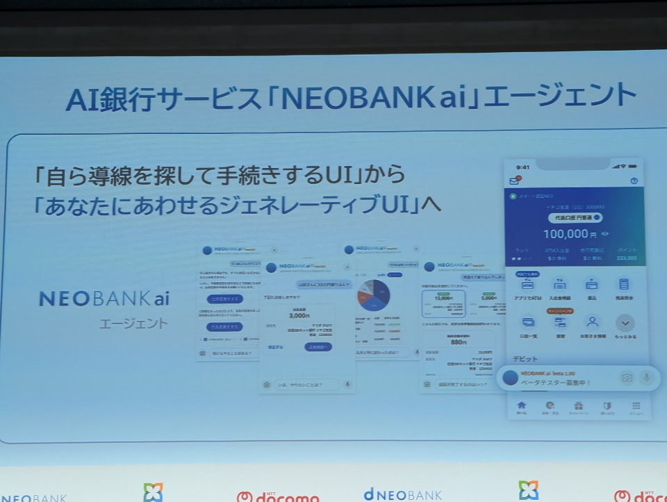 ドコモSMTBネット銀行、対話型AI銀行「NEOBANK ai」発表 dポイント連携や住宅ローン優遇も