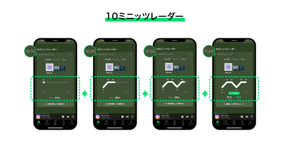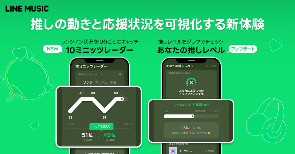音楽サービス「LINE MUSIC」で新機能、楽曲順位が分かる「10ミニッツレーダー」