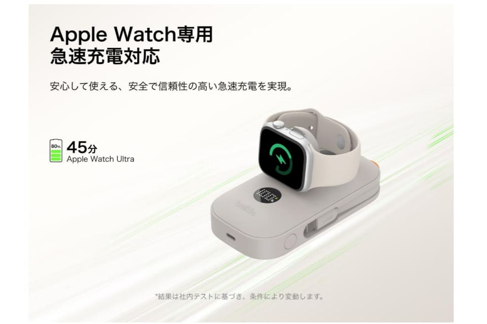 Apple Watch用の急速充電モジュールを搭載することが特徴で、45分で0%→80%まで充電できる。