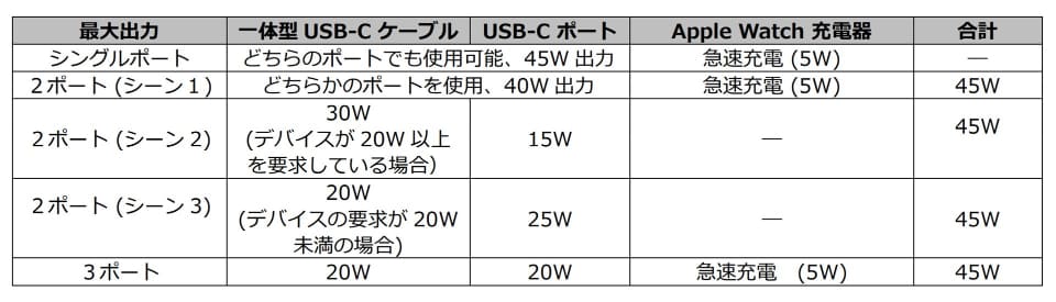 USB単ポート使用時の最大出力は45Wで、MacBook Airなどのパソコンにも充電できる。