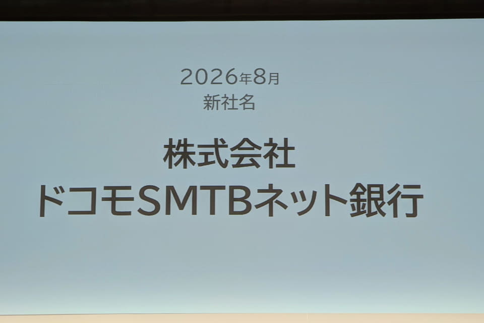 住信SBIネット銀行は、2026年8月3日に「ドコモSMTBネット銀行」に社名を変更する。これは、2025年10月1日にドコモの連結子会社となったことで、ドコモと三井住友信託銀行による共同経営体制になったことを踏まえたもの。2社が相互に協力しネット銀行のさらなる成長に貢献する意思が盛り込まれたものだという。