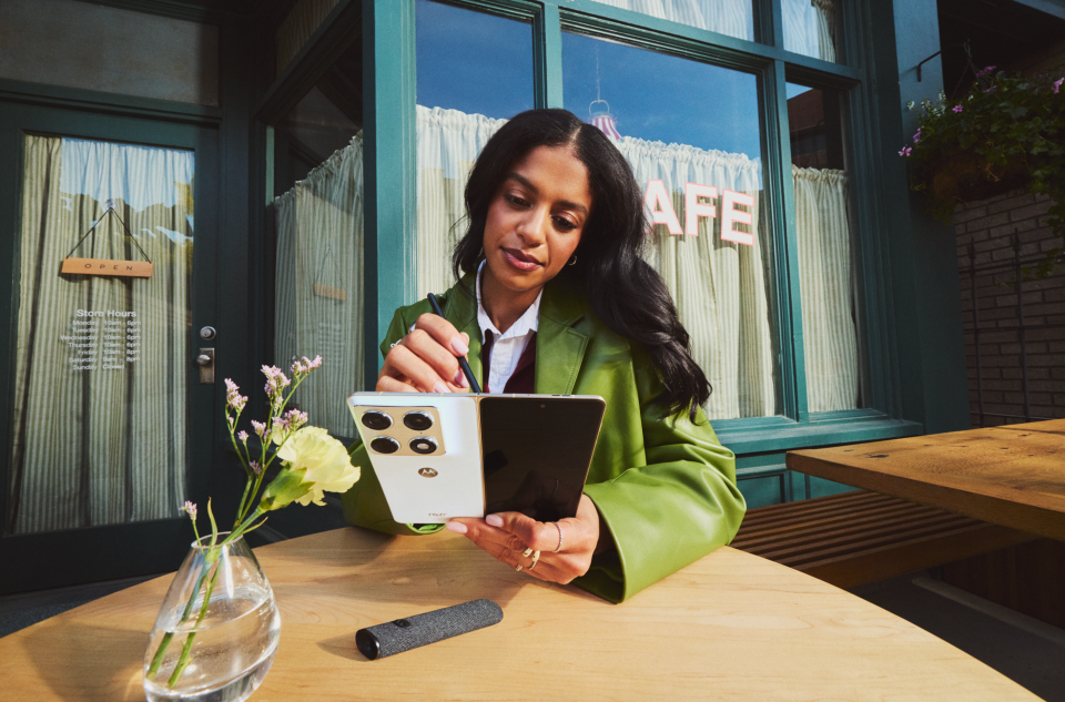 閉じた状態では一般的なバータイプのスマートフォンのように扱える6.6インチの外部ディスプレイを備え、開くと8.1インチの2K LTPOディスプレイが現れる。大画面を活かしたマルチタスクやエンターテインメント用途を想定しており、専用スタイラスペン「moto pen ultra」にも対応する。