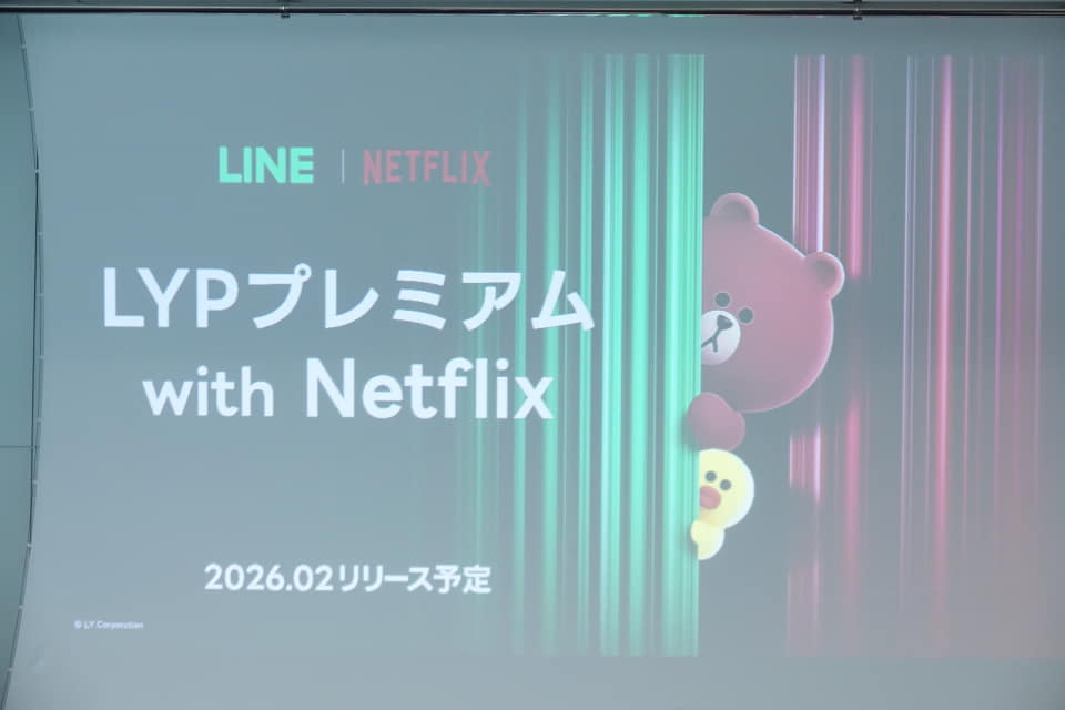 LINEヤフーとNetflixは14日、「LYPプレミアム」と「Netflix」をセットにしたサブスクリプションプラン「LYPプレミアム with Netflix」(月額890円~)を2月上旬に提供すると発表した。Netflix単独で契約する場合の月額料金と変わらず、実質無料でLYPプレミアム(通常月額650円)の特典が利用できるかたちで、シンプルながらもお得感のあるサービスに仕上げられている。