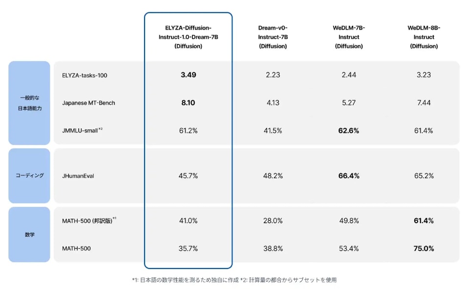 KDDI傘下でAI開発を行うELYZAは、KDDIのGPU基盤を利用して、日本語における知識・指示追従能力を強化した拡散大規模言語モデル「ELYZA-LLM-Diffusion」シリーズを開発し、商用利用できる形で公開した。