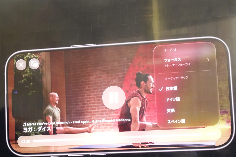 日本での展開にあわせて、28人のトレーナーの実際の声に基づいた生成AIによる「デジタル翻訳音声」で、ワークアウトやメディテーション(瞑想)が日本語で楽しめる機能が追加された。音声は画面上で切り替えられる。