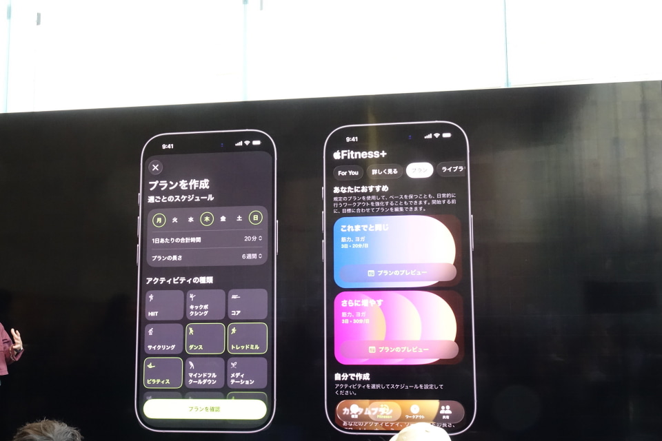 また、Apple Fitness+のトレーナーチームから、飯田クライン“ダイス”大介氏、キム・ンゴー氏、シェリカ・ホルマン氏らも登壇。これから運動を始める人に向けてホルマン氏は「小さく始めることが大事。Apple Fitness+には、5分のコアトレーニングや10分のピラティスも効果がある」とアドバイス。