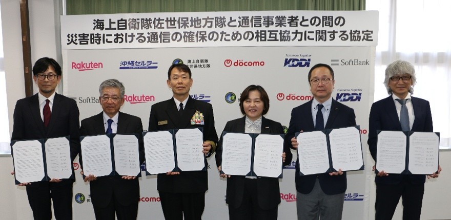海上自衛隊佐世保地方隊と、NTTドコモ九州支社、KDDI、ソフトバンク、楽天モバイル、沖縄セルラー電話の通信事業者5社は、「災害時における通信の確保のための相互協力に関する協定」を1月20日に締結した。