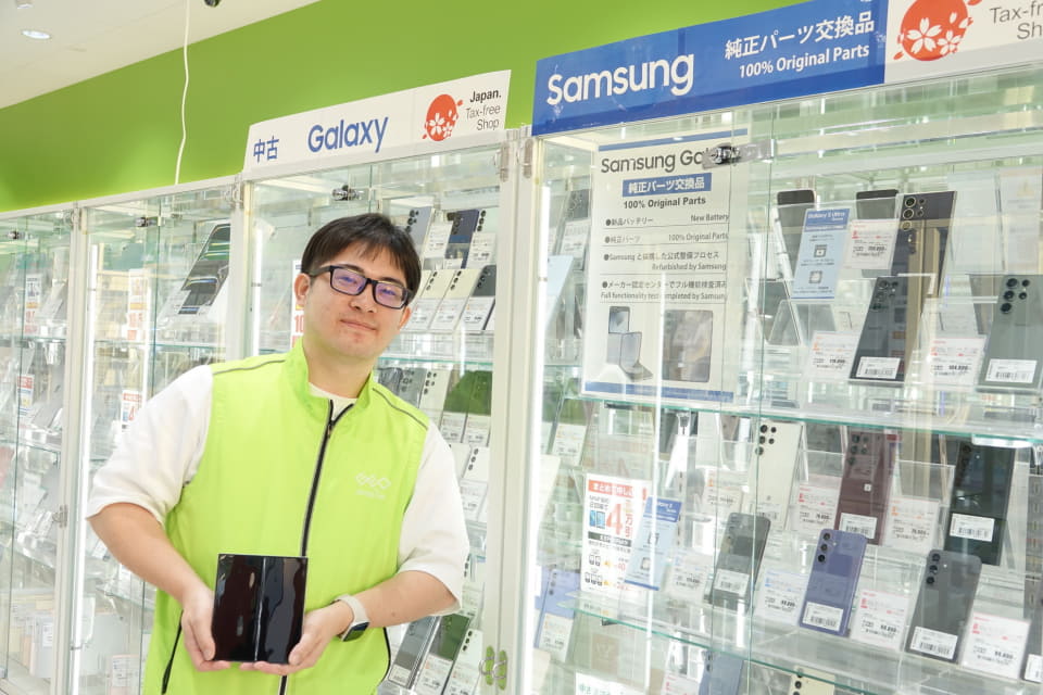 ゲオモバイルでは、Galaxy SシリーズやZシリーズのリファービッシュ品を展開している。店頭では、特にSシリーズのUltra(Galaxy S24 Ultra)やZシリーズなど高価格帯製品のリファービッシュ品が人気だという。森田店長は「最新機種や新品は高額で手が出ないけど、中古品はバッテリーや折りたたみ機構(Zシリーズ)の劣化具合を心配しているユーザーが多い。リファービッシュ品は、これらの中古品の不安を解消できる。約2万円の差額に納得する方が多いのではないか」と分析する。もちろん、ゲオモバイルでも専門的なシステムを使って点検しているが、メーカーと提携した整備を実施しているというところに安心感があると話す。