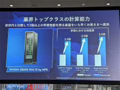 施設内には、高度な計算能力を持つ「NVIDIA GB200 NVL72」などのAIサーバーが設置されている。前世代と比較して2倍以上の学習性能を持つ基盤になるという。