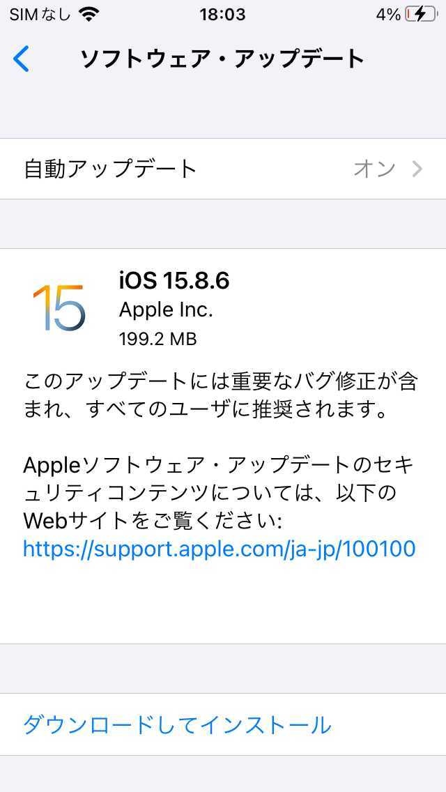 「iOS 15.8.6」は、iPhone 6sシリーズ、iPhone 7シリーズ、iPhone SE(第1世代)、iPad Air 2、iPad mini(第4世代)、iPod touch(第7世代)が対象となる。