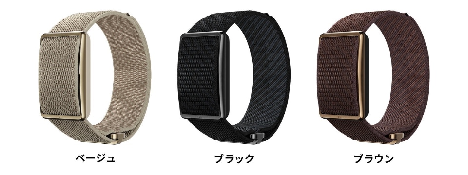 本体カラーはベージュ、ブラック、ブラウンの3色で、S/MとM/Lの2サイズのリストバンドが同梱される。
