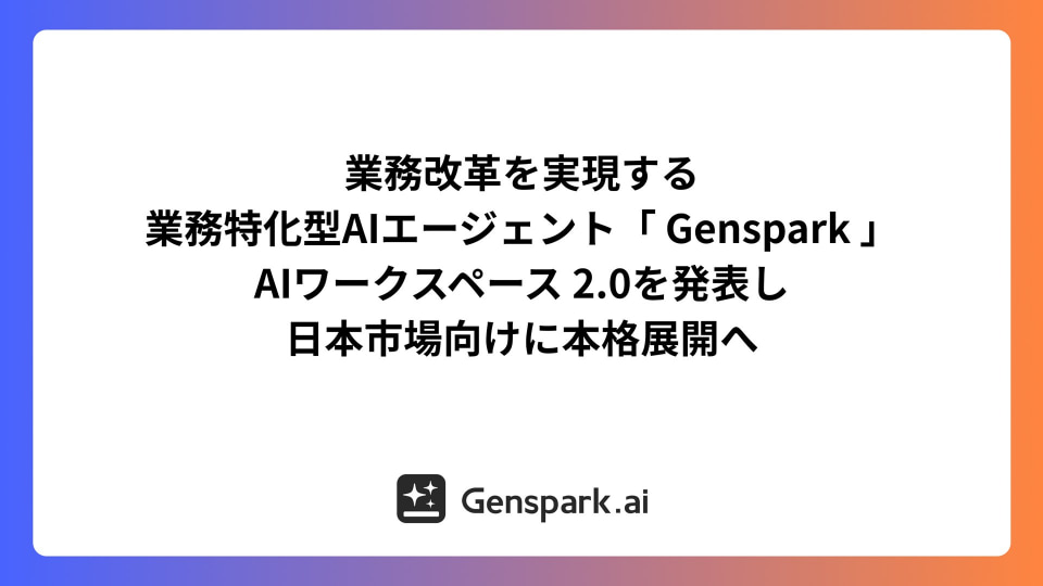 Gensparkは、次世代オールインワンAIワークスペース「Genspark」の新バージョン「2.0」を発表し、日本での法人展開を本格化させる。