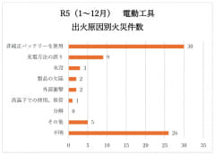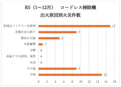 消防庁は年別で出火件数上位3位の製品について出火原因を公表。モバイルバッテリーの出火原因は「外部衝撃・高温下での使用」が上位となった。電動工具については「非純正バッテリーの使用」、携帯電話機は「外部衝撃・分解」が多くなっている。