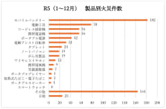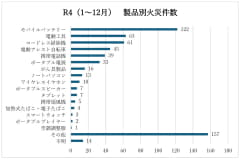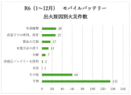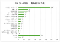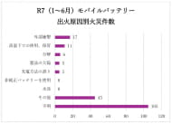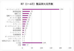 令和4年~令和7年(1月~6月)を通して、製品別ではモバイルバッテリーからの出火が多く見られた。