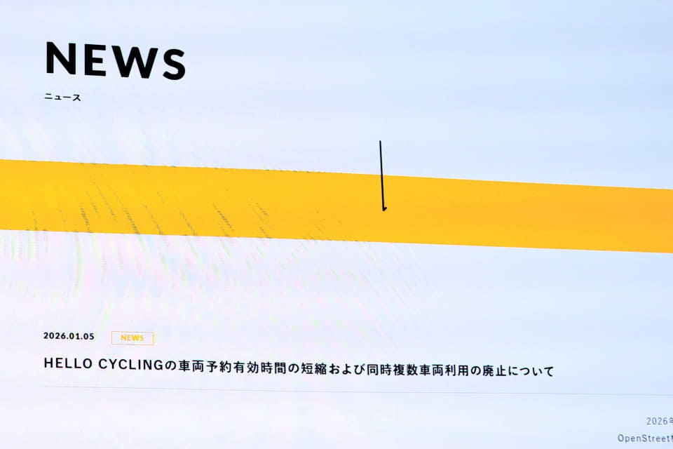 オープンストリート(OpenStreet)は、シェアサイクルサービス「HELLO CYCLING」の車両予約有効時間を短縮し、同時複数車両利用を廃止した。