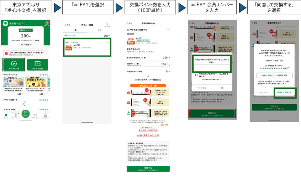 東京ポイントからau PAY残高への交換(イメージ) なお、東京都は2日、東京アプリ上でマイナンバーカードによる本人確認を行うと東京ポイントが1万1000ポイント進呈される「東京アプリ生活応援事業」を開始した。期間は2027年4月1日まで。