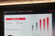 TCL JAPAN ELECTRONICSシニアマーケティングマネージャーの白天石氏は、TCLという企業について「半導体からディスプレイ、太陽光パネルといった事業が軸の会社」と説明。すべての事業に専門性があるといい、ディスプレイ事業においても、「幅広い種類のディスプレイをカバーすることで、ディスプレイ事業全体を高度化している」と指摘。特に8Kやeスポーツ向けディスプレイパネルでは世界シェアナンバーワンだという。