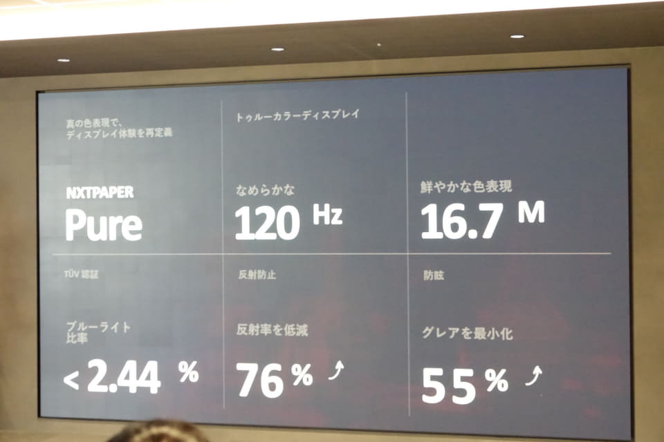 ディスプレイは11.5インチ(2200×1440)の液晶ディスプレイで、同社が開発した「NXTPAPER Pure」技術により、120Hzのリフレッシュレート、1670万色のフルカラー表示に対応しながらも、0.005秒未満の超低遅延性能を両立。加えて、ブルーライトや外部光の反射を低減、グレアが最小化されており、ユーザーの目を疲れさせず、より本物の紙に近い体験ができる。