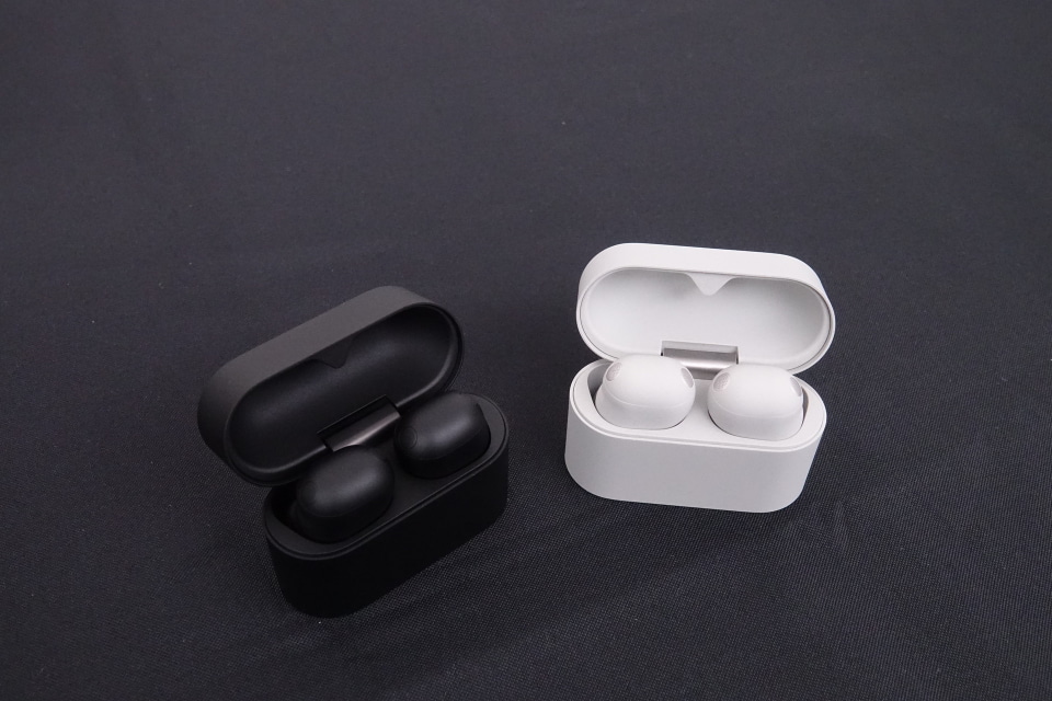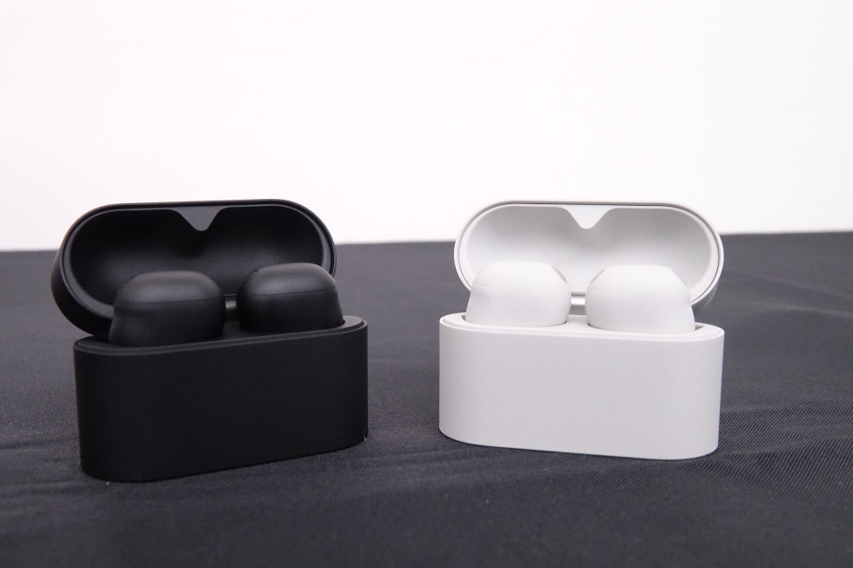 カラーバリエーションはブラックとプラチナシルバーの2色展開。本体に刻印される、SONYロゴを控え目にして落ち着いた外観に仕立てられており、2つのマイクが特徴的なデザインになっている。充電ケースは直線的なデザインになり、ヒンジは金属部品。LEDも本体の外観に溶け込むよう仕上げられている。