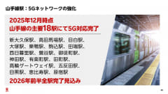 地下鉄では、東京メトロと都営地下鉄の駅で対策を実施。また、JR山手線の駅周辺でも5G基地局の設置を進めており、2025年12月の時点で18駅で5G対応を完了させた。2026年前半までに残りの駅でも完了させるとしている。