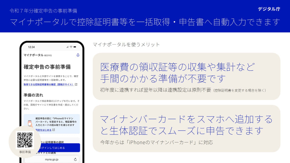 令和7年分の確定申告の受付が16日に始まる。マイナポータルとe-Taxを連携させることで、医療費の領収書や控除証明書といったデータを一括取得し、申告書へ自動入力できる。