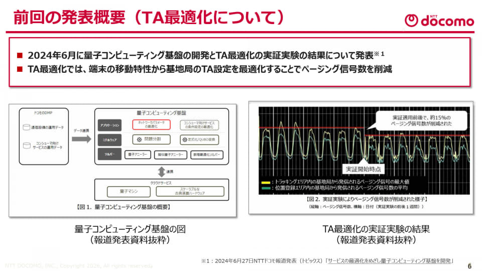 同社が今回開発した技術は、量子コンピューティングのなかでも組み合わせ最適化問題の解決に特化しているアニーリング技術を活用し、ページング信号と位置登録信号の両方を最適化できるもの。これにより、着信時のページング信号を抑えながら、人が多く移動する動線沿いなどで位置登録信号を抑制するエリア設定を自動で設計できるようになった。鉄道などの重要動線にTA-Listの境目を置かないなど、ネットワーク運用上の制約を守りつつ、全国各地のさまざまな特性も考慮に入れながらTA-Listを形成できるようになり、ネットワークの負荷を抑制できるようになった。