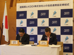 2月4日、KDDIは滋賀県と包括連携協定を締結し、滋賀県庁において、滋賀県の三日月大造知事、KDDI代表取締役会長の髙橋誠氏が出席のもと、協定締結式が行なわれた。