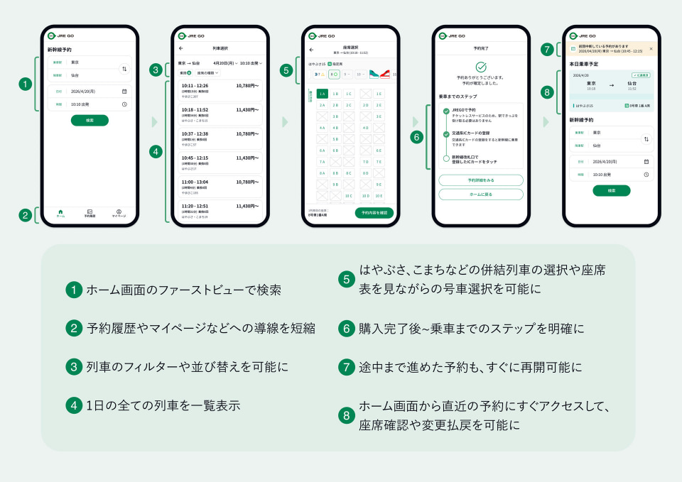 えきねっとの初回利用者が予約完了までに平均十数分かかっていた状況を刷新し、当日予約が半数を占める新幹線利用において「迷わず最短1分で予約できる体験」になるとうたう。