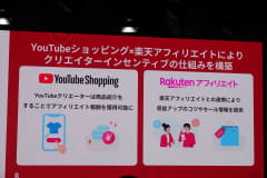 あわせて発表された楽天グループとのパートナーシップは、商品検索で楽天市場で販売されている商品が、YouTubeショッピングで検索できるようになる。ユーザーは、楽天アフィリエイトなどからわざわざURLを取得しなくても、より手間なく収益化につなげられるようになる。