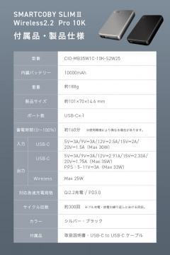 CIO、Qi2.2対応のモバイルバッテリー「SMARTCOBY SLIMⅡ Wireless2.2 Pro 10K」発売