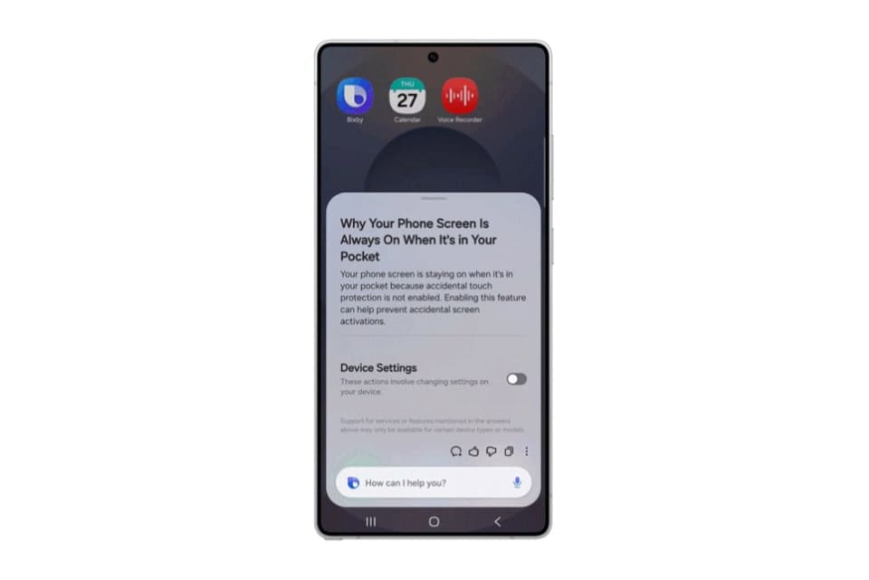 また、「ポケットの中に入れているのに画面が常に点灯しているのはなぜ?」と質問すると、状況に応じて誤動作防止などの関連設定が表示され、すぐ設定をオンにできる。