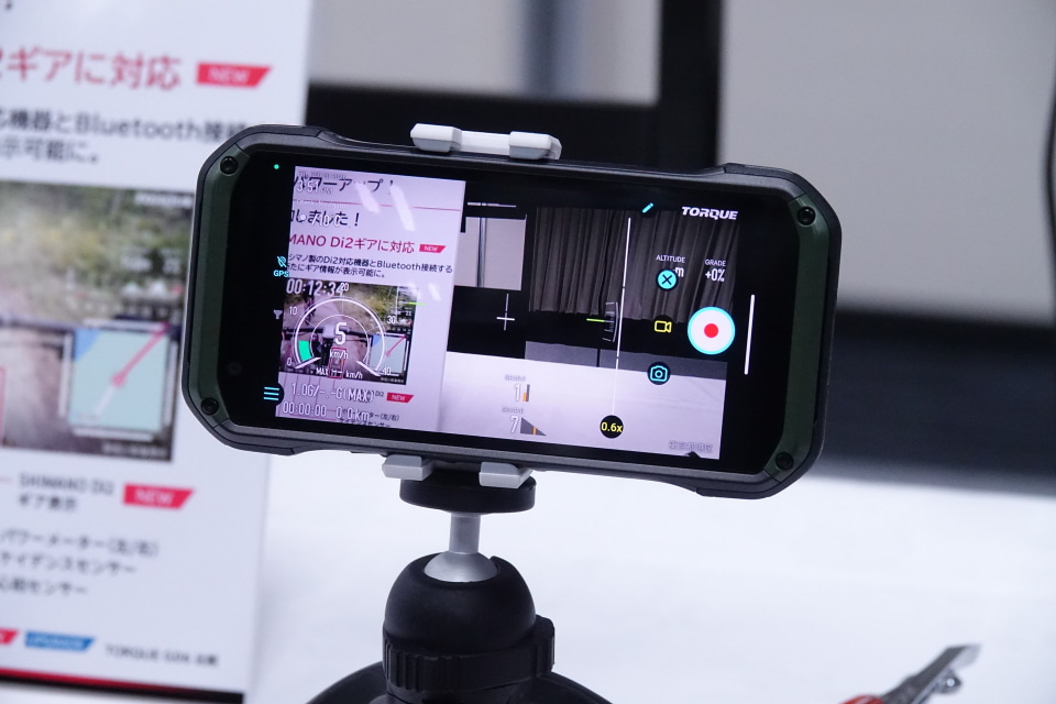 撮影日時や移動速度などを写真・動画に重ねられる「Action Overlay」は、風切り音を低減した。バイクの走行映像などに有効で、エンジン音は残しつつ風切り音だけを抑えることで、臨場感を高めた。このほか、シマノ製の自転車用ギア「Di2」とBluetooth接続することで、何速にシフトしているかを表示できる。