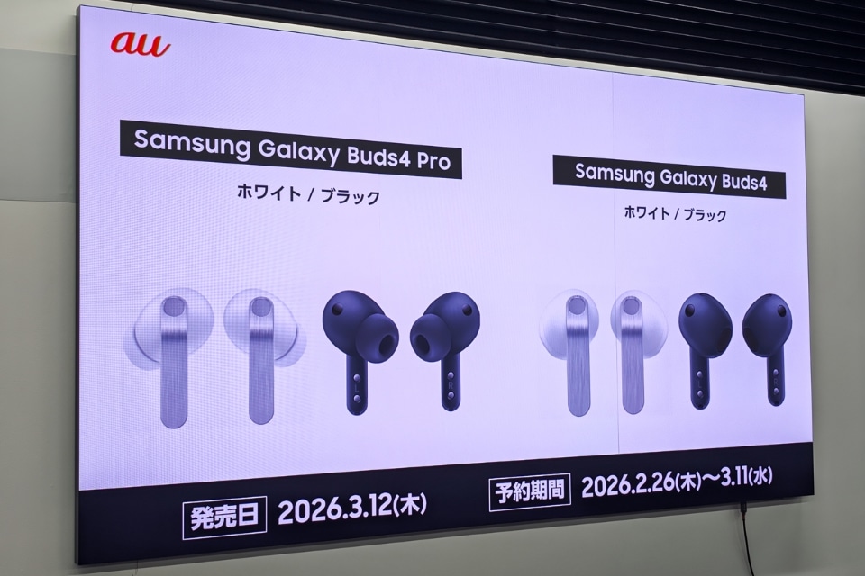 AIアプリの音声起動やヘッドジェスチャー操作に対応するワイヤレスイヤホン「Galaxy Buds4 Pro」と「Galaxy Buds4」も、3月12日に発売される。