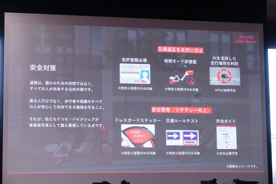 今後提供予定の特定小型原付では、運転免許証の登録や特例モードの非搭載といった仕様は引き継がれる。さらにその先の展望としては、AIで利用者が正しい場所を走っているかを認識する実証実験の実施も予定している。