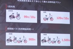 料金体系は10分単位に刷新され、従来型車両は99円/10分。新型車両は120円/10分。月額制の場合は3300円/月。新料金体系と新型車両は、5月1日から東京広域、川崎、横浜、大阪、広島が提供エリアで、川崎のみ新型車両の提供が後になる。月額プランは月30回までの利用となり、それ以降は通常の料金が課金される。