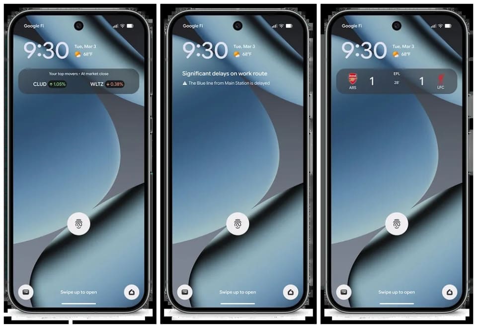 ホーム画面の「スナップショット」機能が進化し、通勤ルートの運行情報や遅延アラート、リアルタイムのスポーツ試合速報、「Google Finance」と連携したマーケットトレンドなどを表示できるようになった。