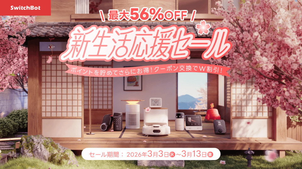 SWITCHBOTは、Amazon公式ストア、SwitchBot公式サイト、楽天市場の公式ストアで「新生活セール」を開催している。スマートホーム関連製品を特別価格で販売する。