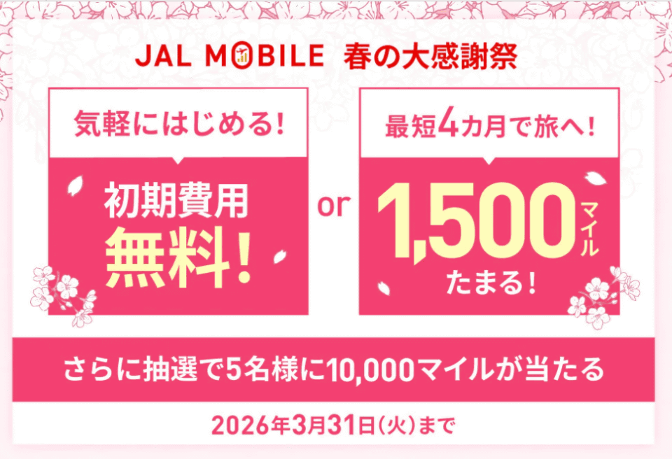JALモバイルでマイル増量or初期費用無料キャンペーンがスタート