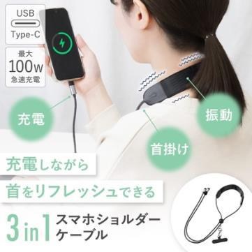 サンコー、首マッサージ機能付きのスマホショルダー兼充電ケーブル発売