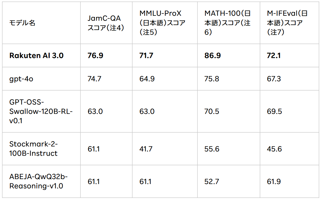 「Rakuten AI 3.0」は、日本語に最適化した約7000億パラメータのMixture of Expertsアーキテクチャを採用している。同社は、独自のバイリンガルデータや研究成果を用いて開発しており、文章作成やコード生成、文書解析や抽出など幅広いテキスト処理での利用を想定している。